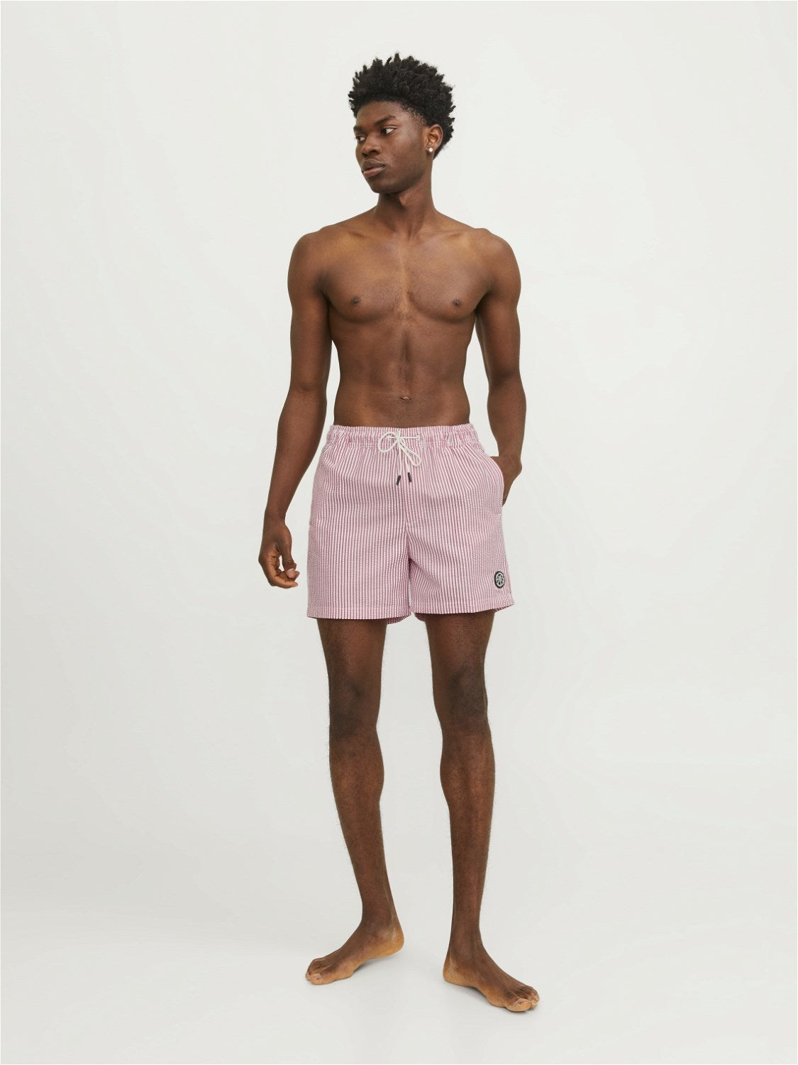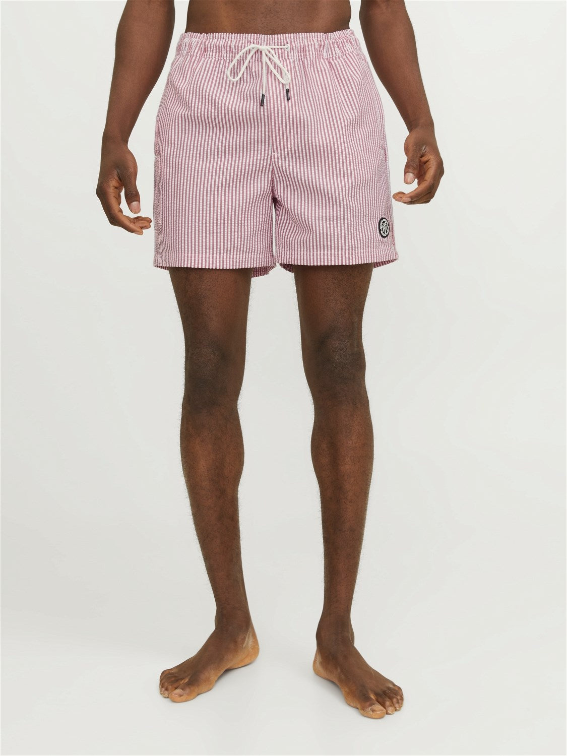 Gör dig redo för sommaren med ett lätt strandplagg som garanterar en fräsch, rolig och färgstark look. Vävt tyg är ett starkt och hållbart material som inte är stretchigt som stickade tyger. - Produkttyp : Badshorts med normal passform - Livhöjd : Medelhög midja - Detaljer : Elastiskt midjeband, Dragsnodd i midjan - Passform : Korta badshorts med normal passform