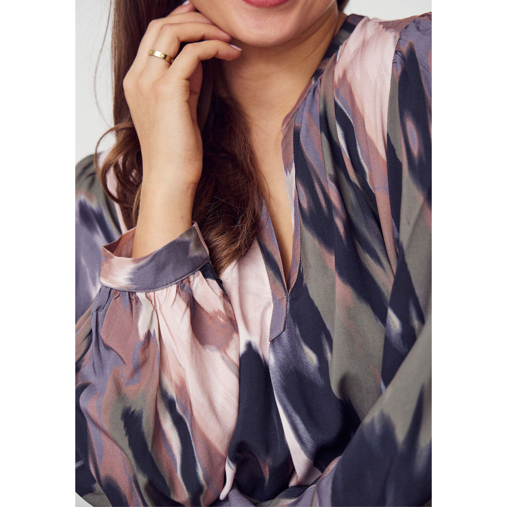 Designen är genomtänkt ned till minsta detalj: en feminin V-ringning, mjuka axlar och långa ärmar med manschetter som skapar en tidlös silhuett. Den lossa passformen gör blusen enkel att styla och bekväm att bära - hela dagen.