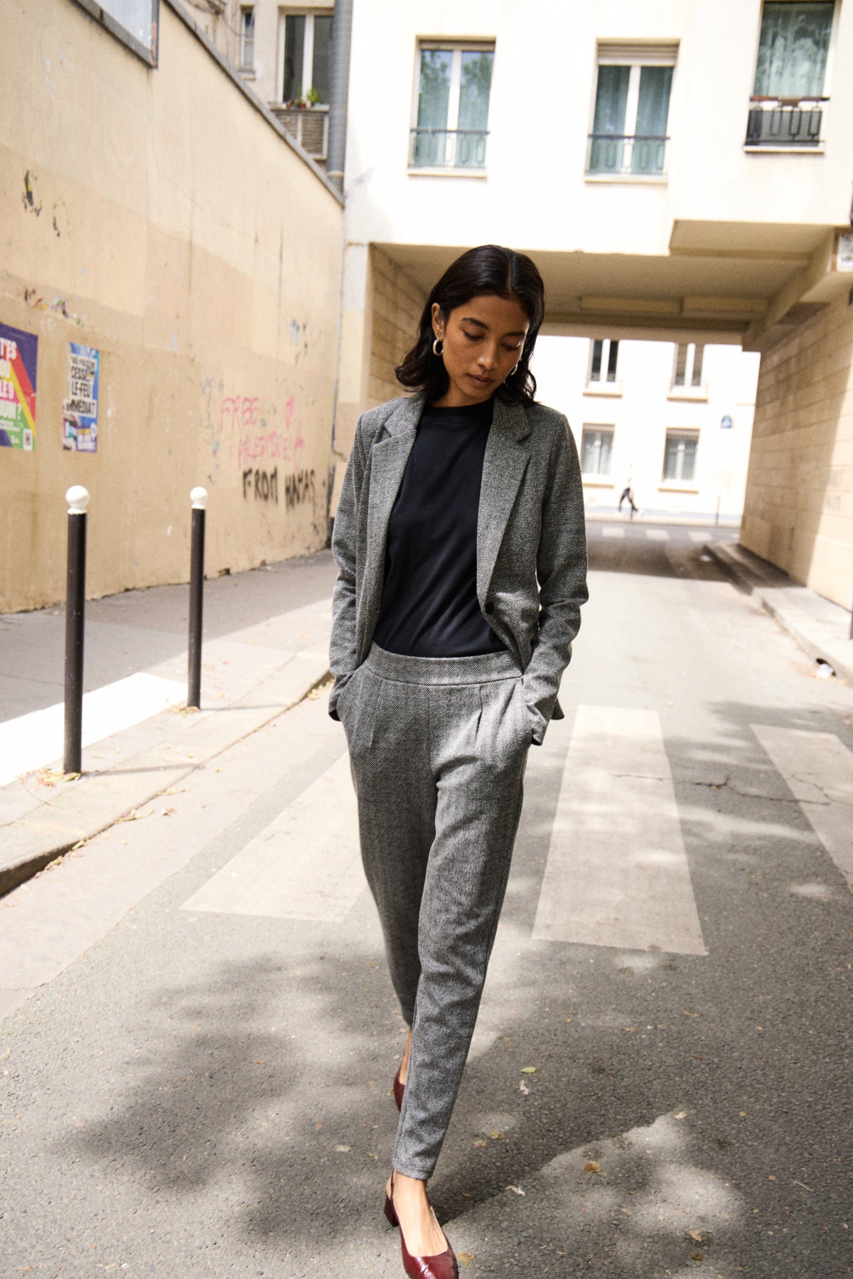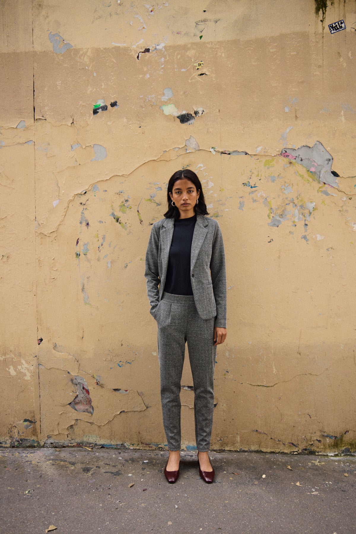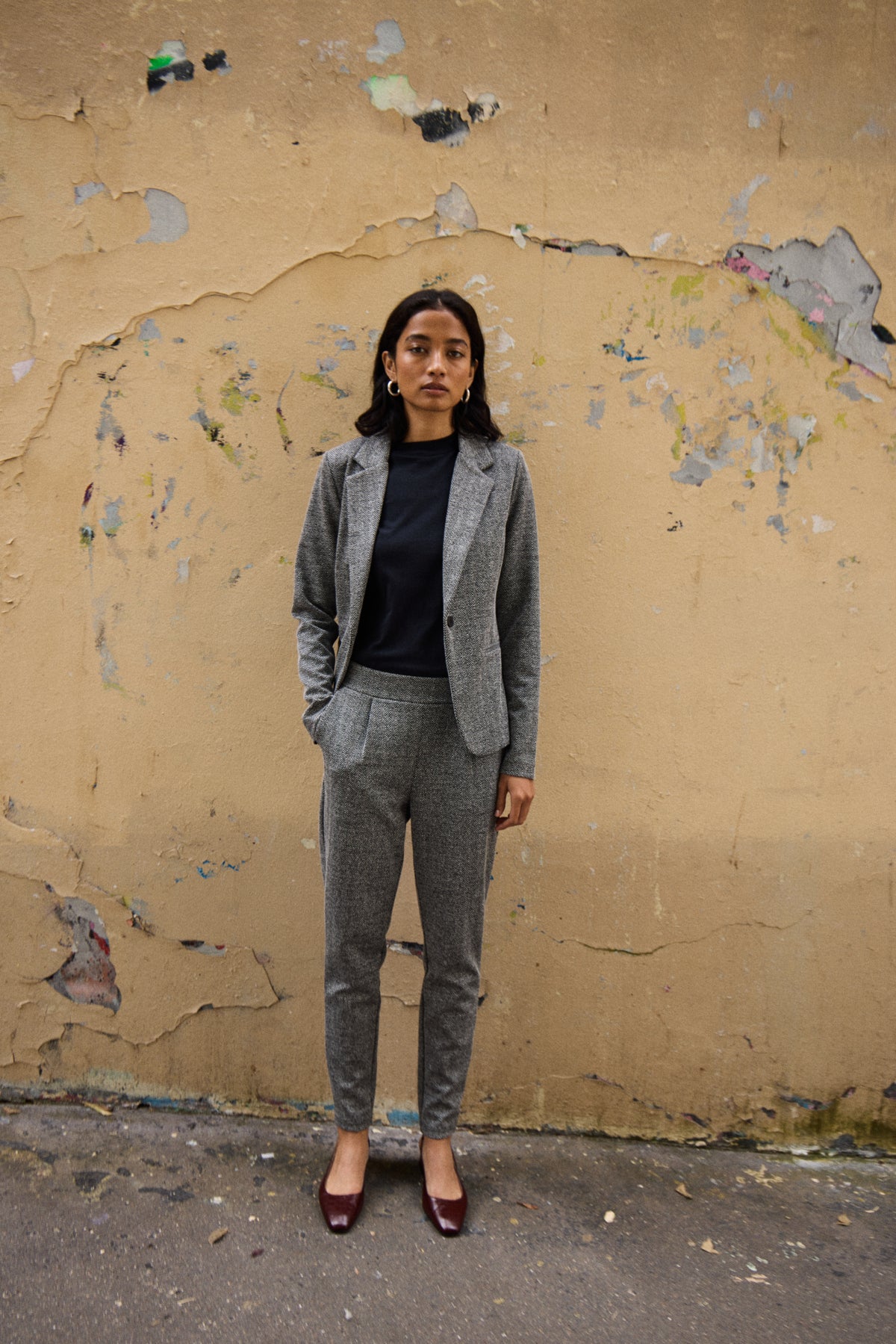 Dam slim fit byxor med elastisk midja ger bekväm passform hela dagen. Ankel-längd och enkel design gör dem perfekta för arbete och vardag.