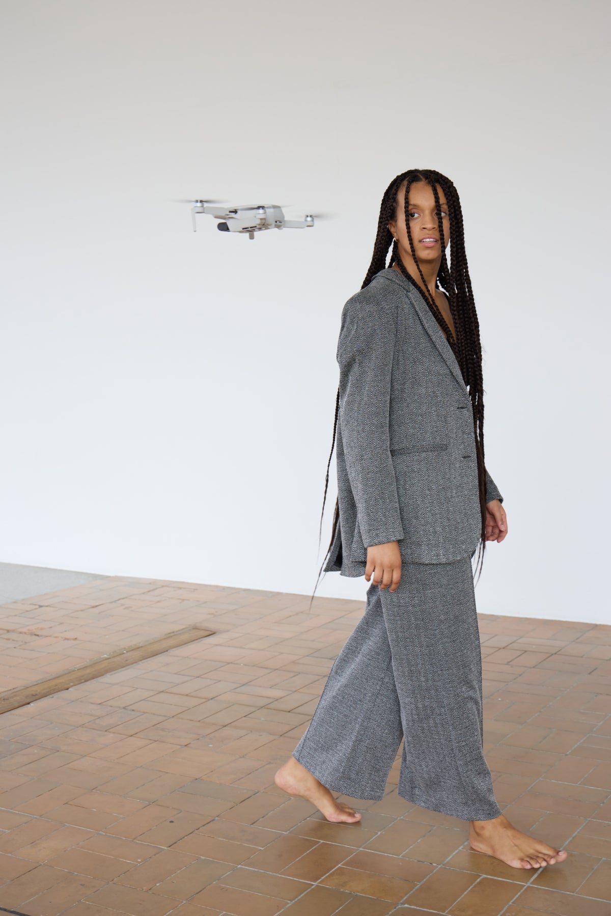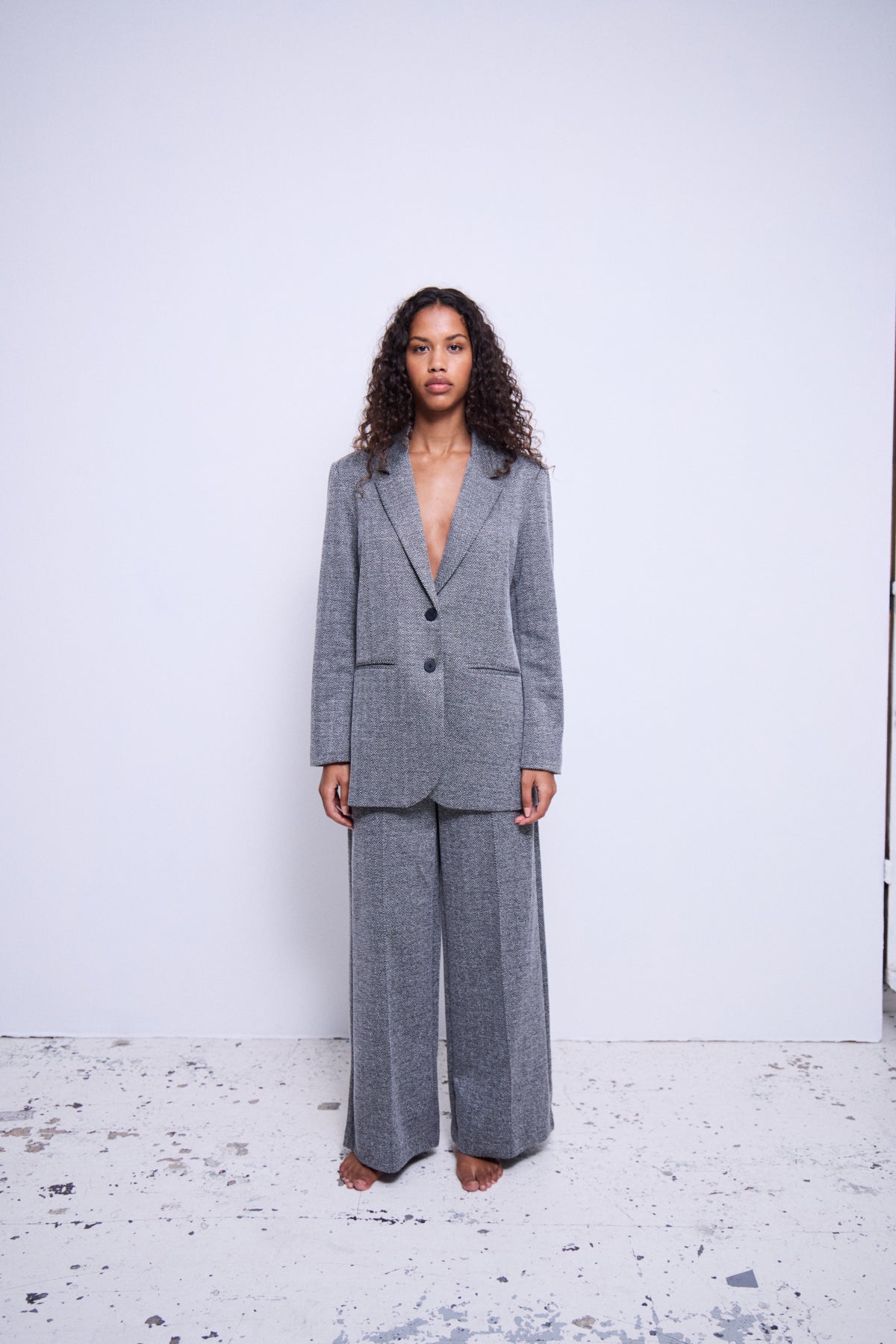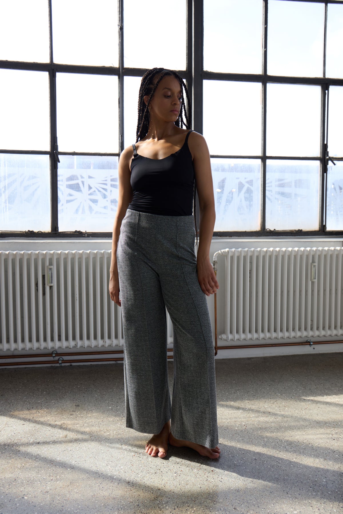 Byxa Kate jacquard, black herringbone