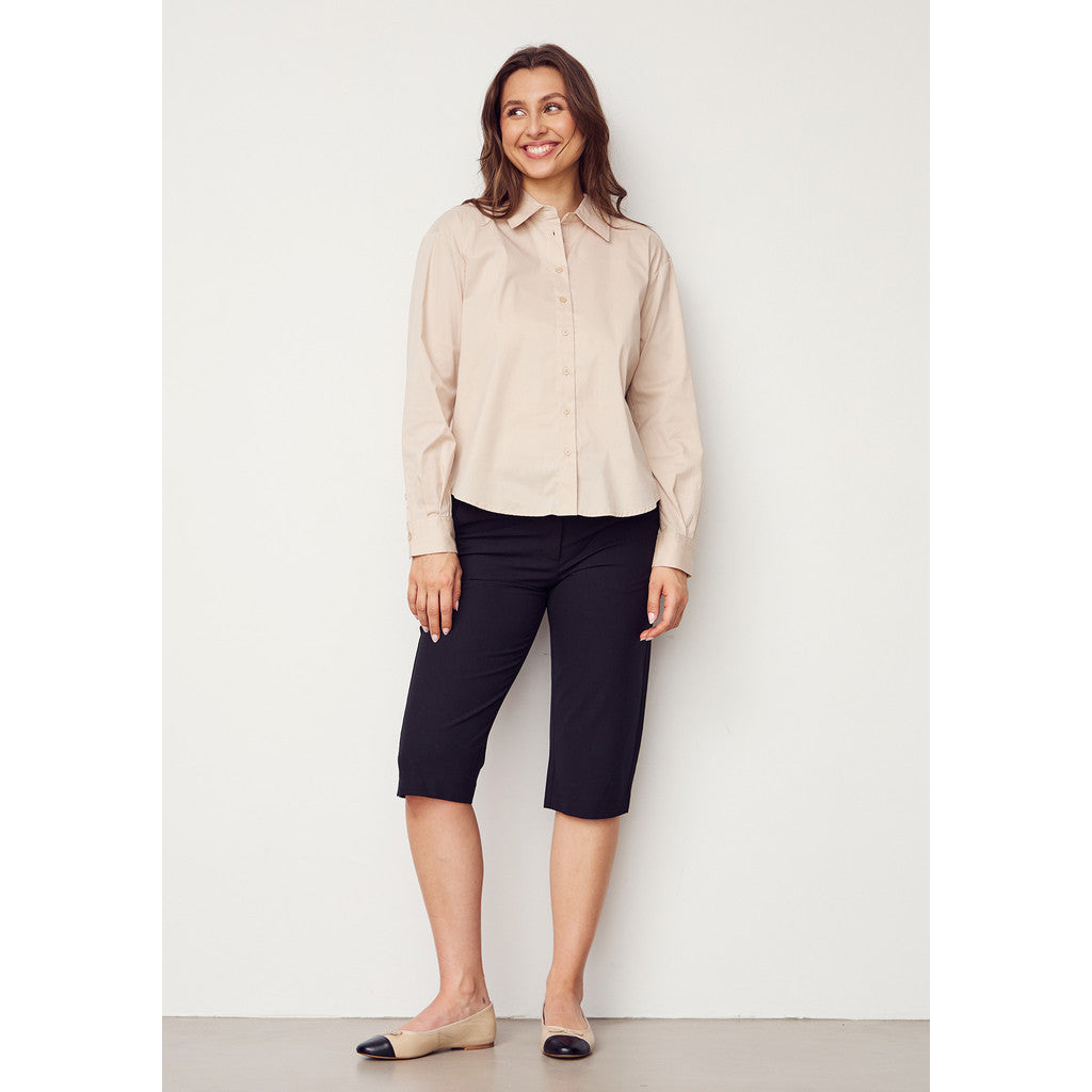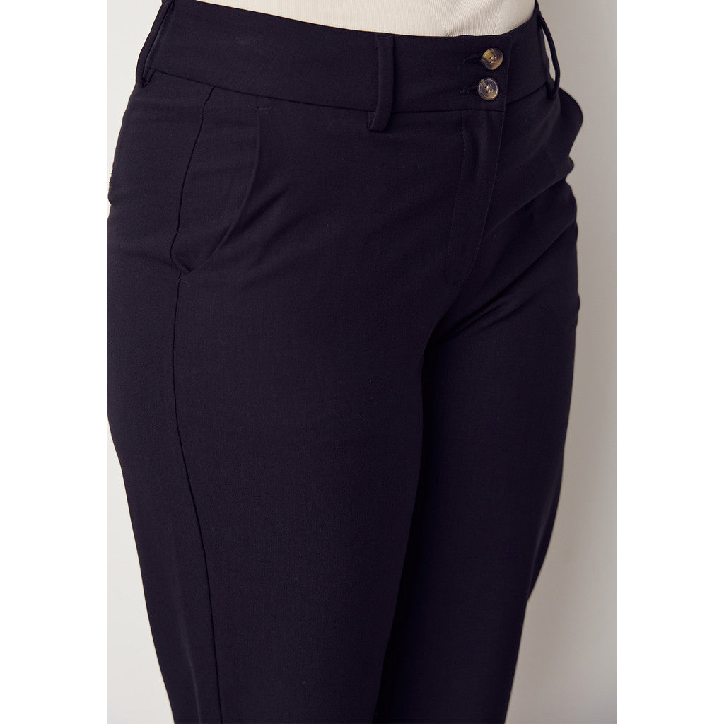 Rimini Capri Pant är en säker favorit under de varmare månaderna på året. Byxorna har en klassisk design som du känner igen från Rimini Pant, men har en kort benlängd, vilket gör dem idealiska som vår- och sommarbyxor och ger luft till benens nedre del. De har en mellanhög midja med fast linning, dragkedja med två knappar, fickor på varje sida och en sprund i byxbenet för en bekväm passform. Rimini Capri Pant är perfekta när de klassiska långa byxorna och jeansen blir för varma. Vi föreslår att du stylar dem med en lätt skjorta eller blus tillsammans med ett par sandaler eller sneakers.