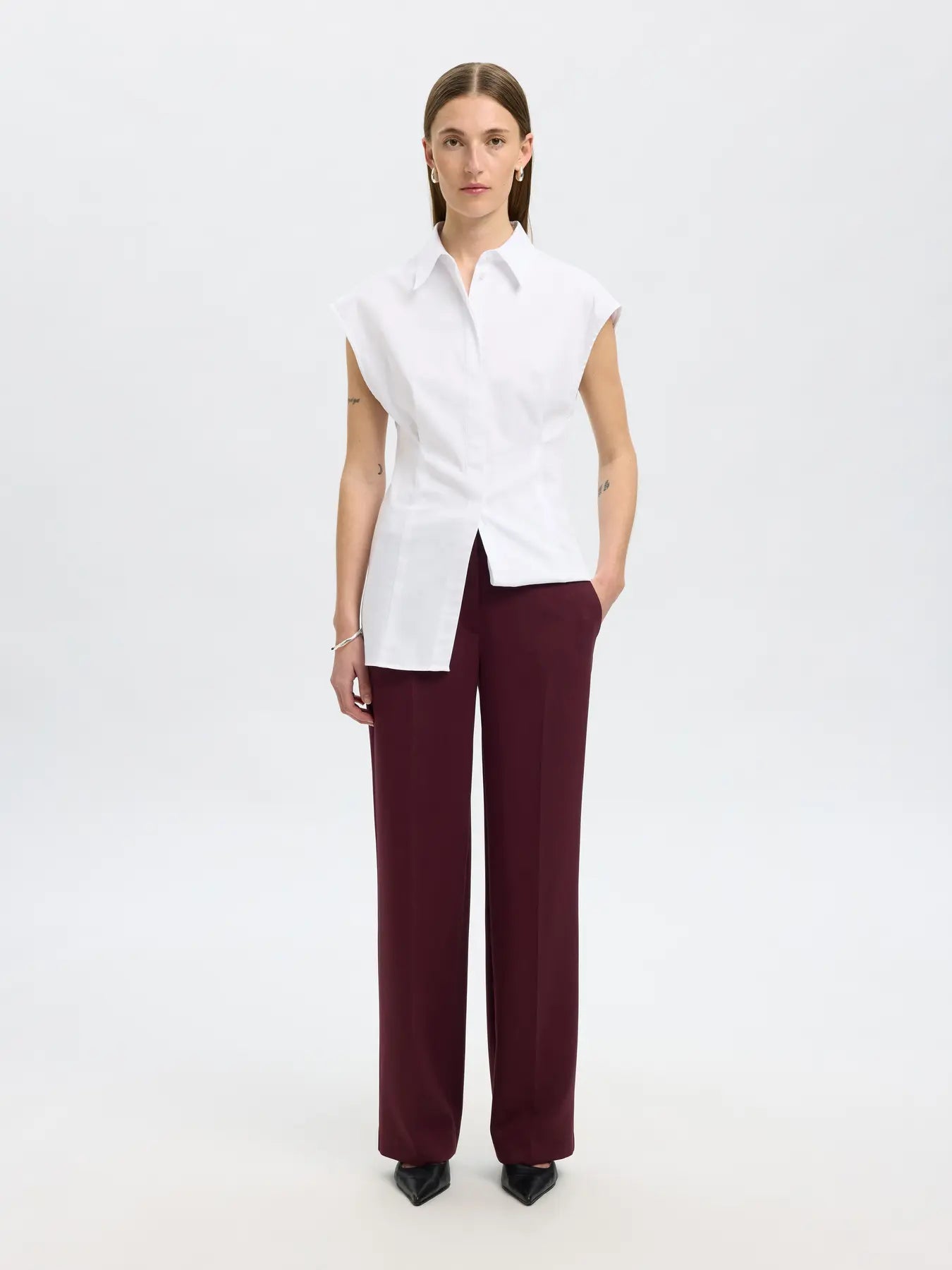 Dessa skräddarsydda, vida byxor är allt du behöver för att se prydlig och professionell ut. De har en smickrande, vid silhuett som förlänger dina ben och lyfter fram din figur. Oavsett om du väljer ett par i en pastellfärg eller något mer subtilt rekommenderar vi att du stylar dem som en tvådelad kostym med vår matchande kavaj. Lägg till ett läderbälte som pricken över i. - Medelhög midja