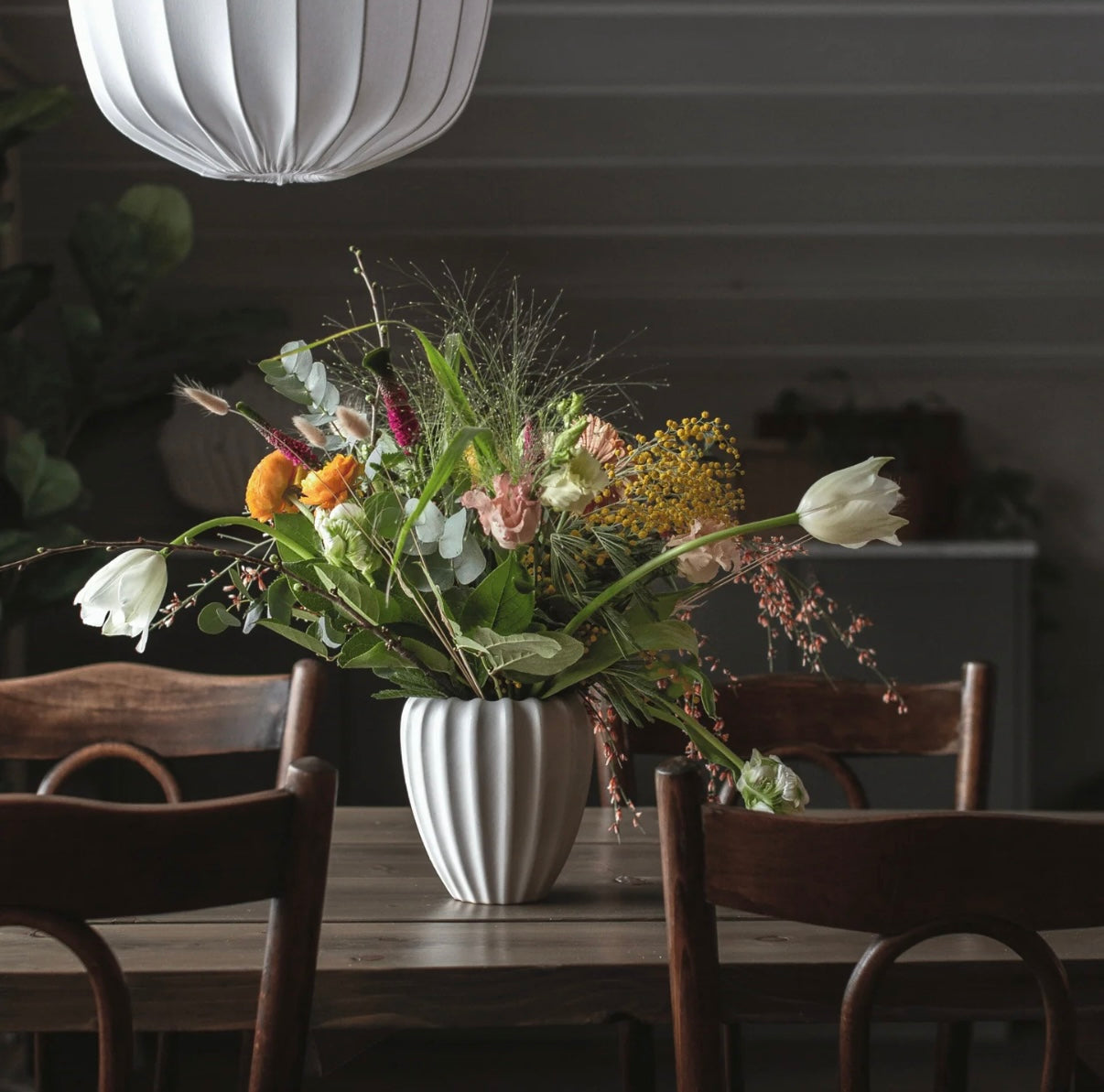 Modellen Mellan är perfekt för en luftig tulpanbukett, fylliga rosor eller en volym av torkade vippor som ger hemmet en mjuk och harmonisk känsla året runt.