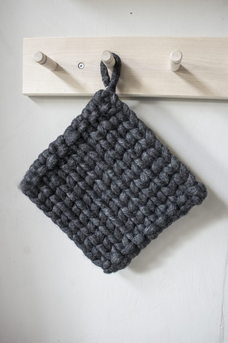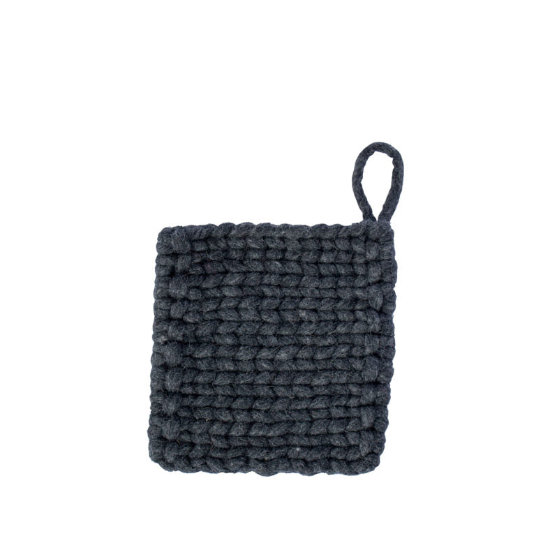 Exklusiv grytlapp i Fairtrade ull som är tovad för hand i Nepal.