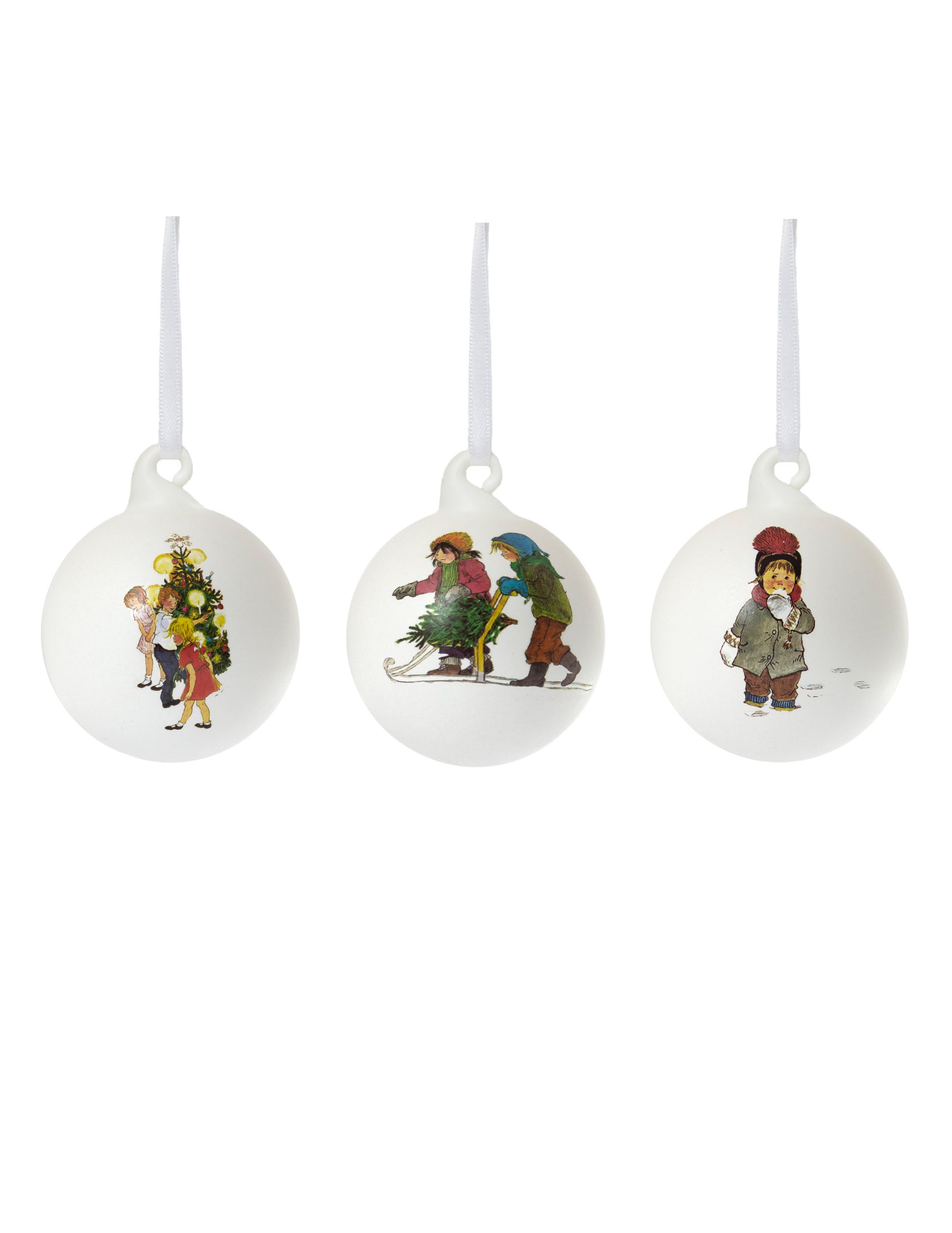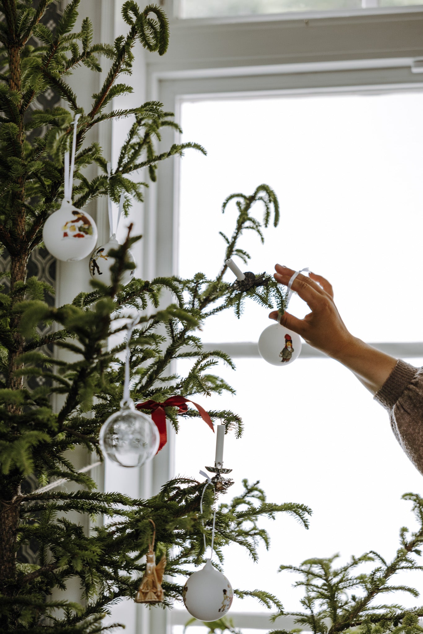 Julgranskulor tillverkade i högkvalitativt matt glas och pryds av Barnen i Bullerbyn-motiv som fångar den lantliga och idylliska julkänslan.