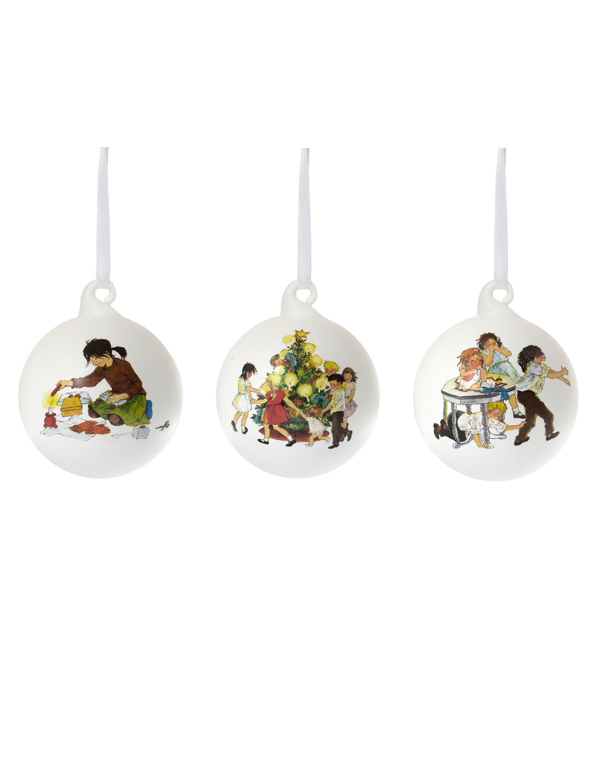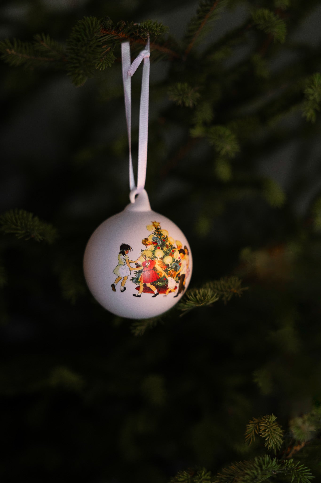 Julgranskulor tillverkade i högkvalitativt matt glas och pryds av Barnen i Bullerbyn-motiv som fångar den lantliga och idylliska julkänslan.