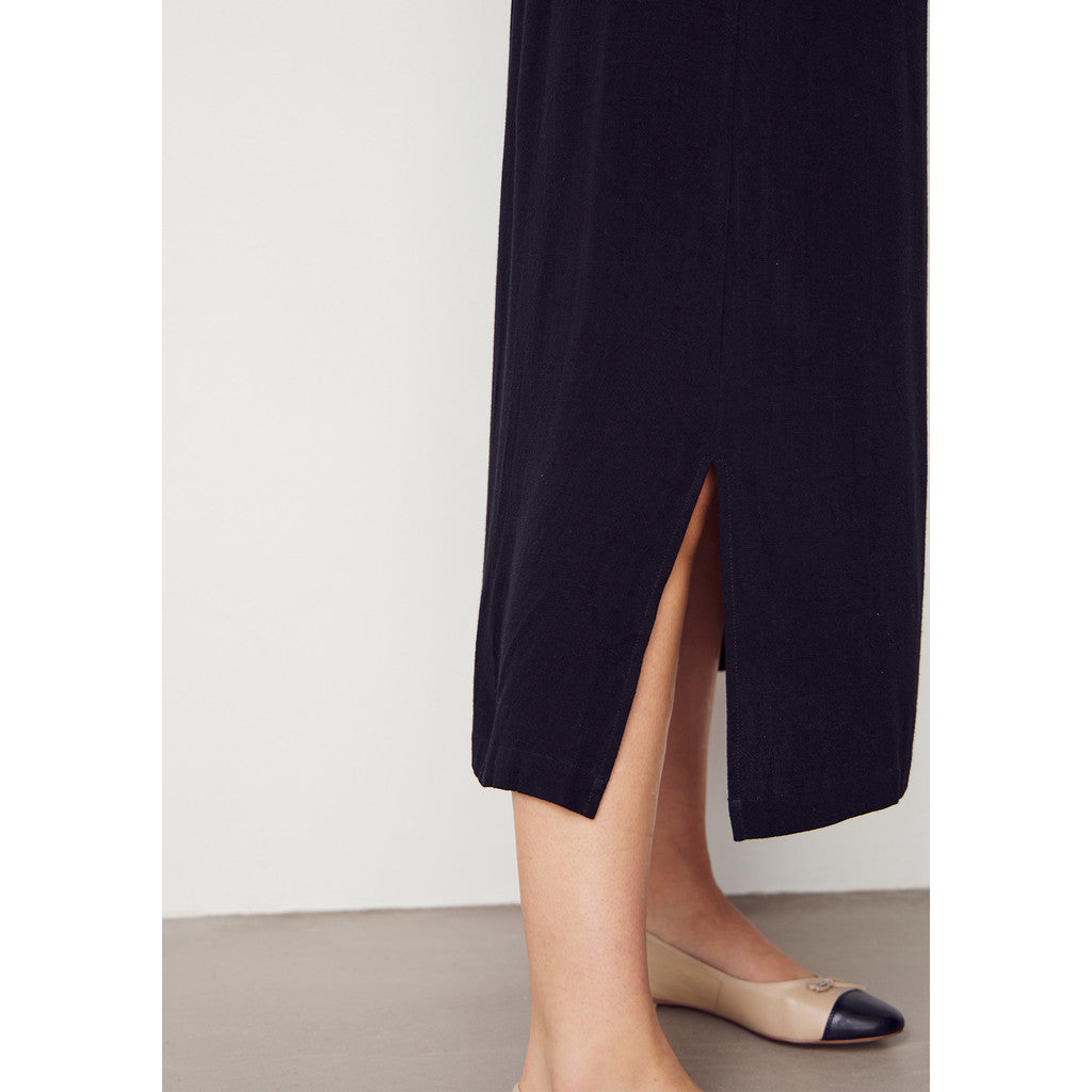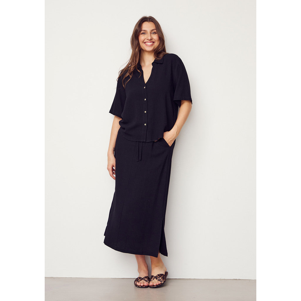 Pearl Skirt är en sofistikerad och mångsidig kjol, perfekt för den moderna kvinnan som värdesätter komfort och stil. Den lätta linne/viskosblandningen säkerställer en naturlig och elegant drapering, medan den elastiska midjan med knytband ger en flexibel och smickrande passform. Den långa silhuetten skapar en tidlös look som lätt kan anpassas för olika tillfällen.