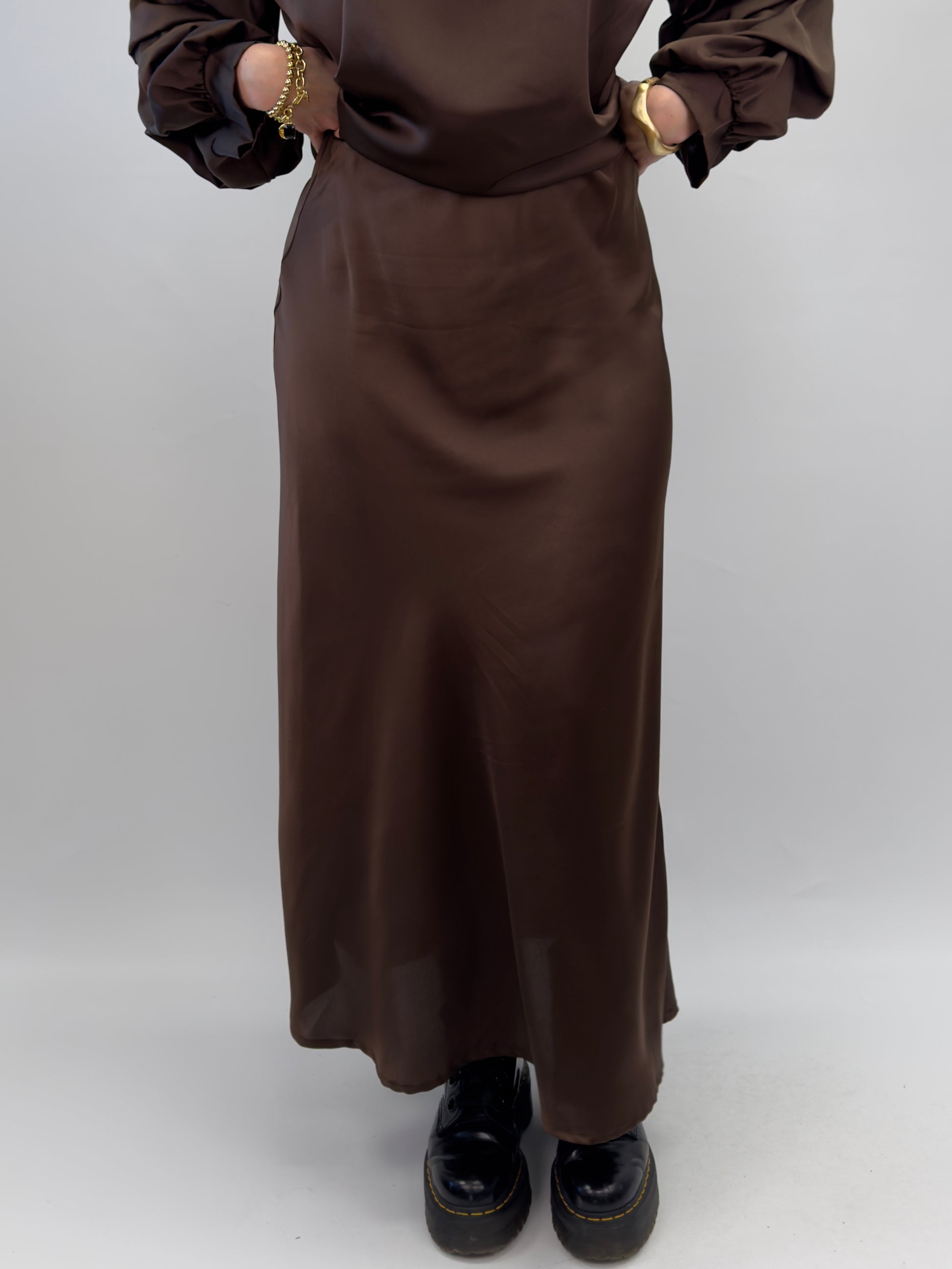Tyrah är en elegant maxikjol med glansig yta som ger en lyxig känsla. Den följsamma passformen gör den enkel att styla både till vardags och fest, och skapar en stilfull look med modern edge.