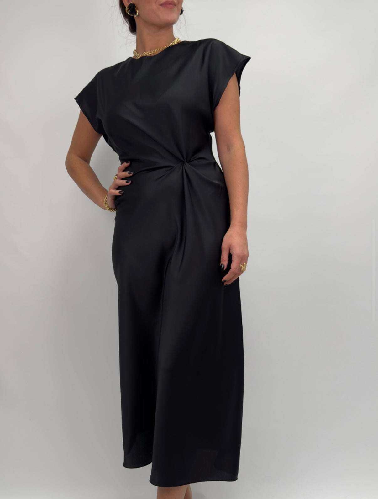 Med en elegant drapering i midjan och mjukt fallande material i satinlook ger den en smickrande silhuett.
