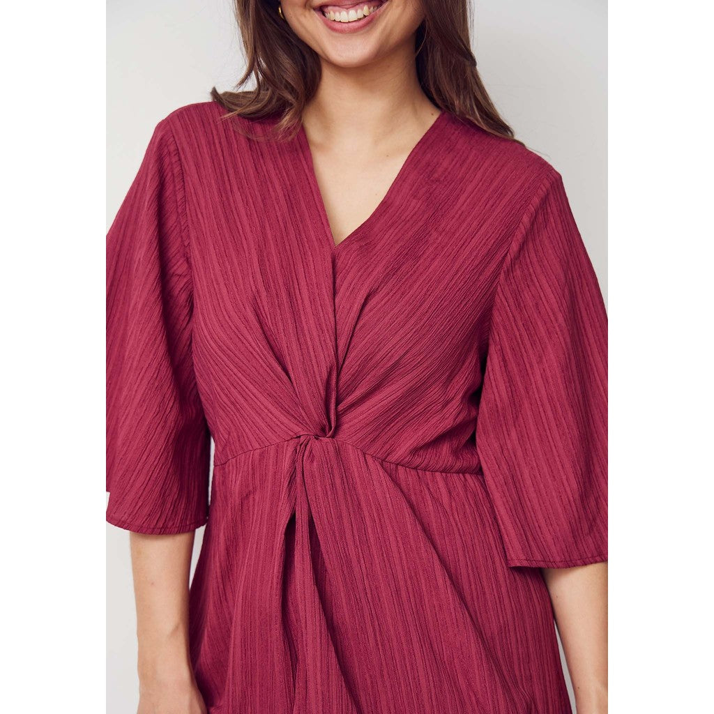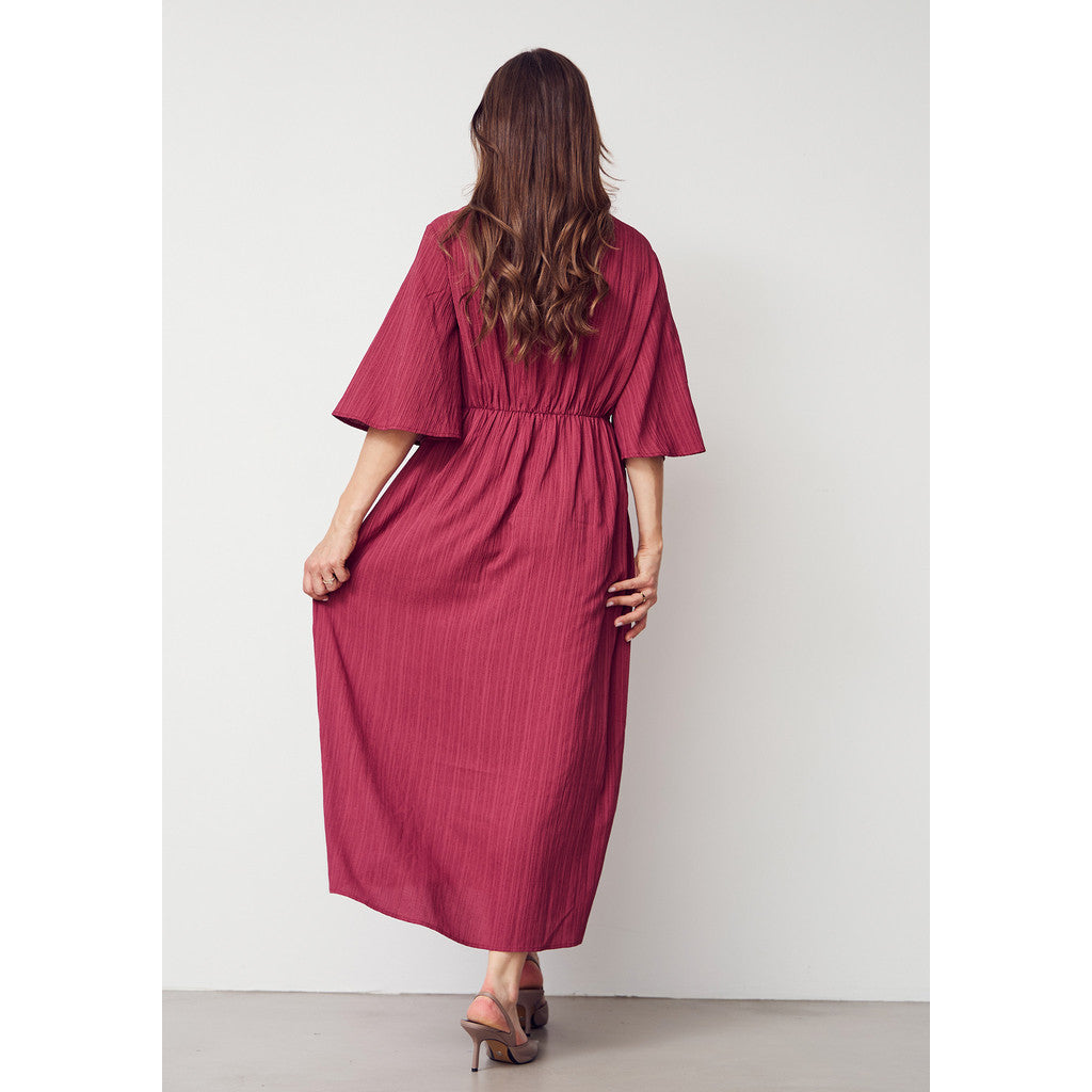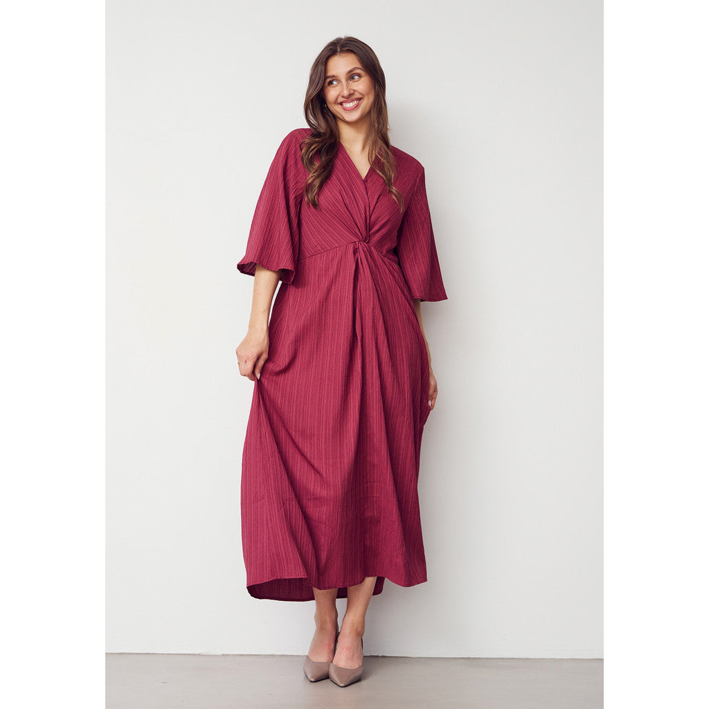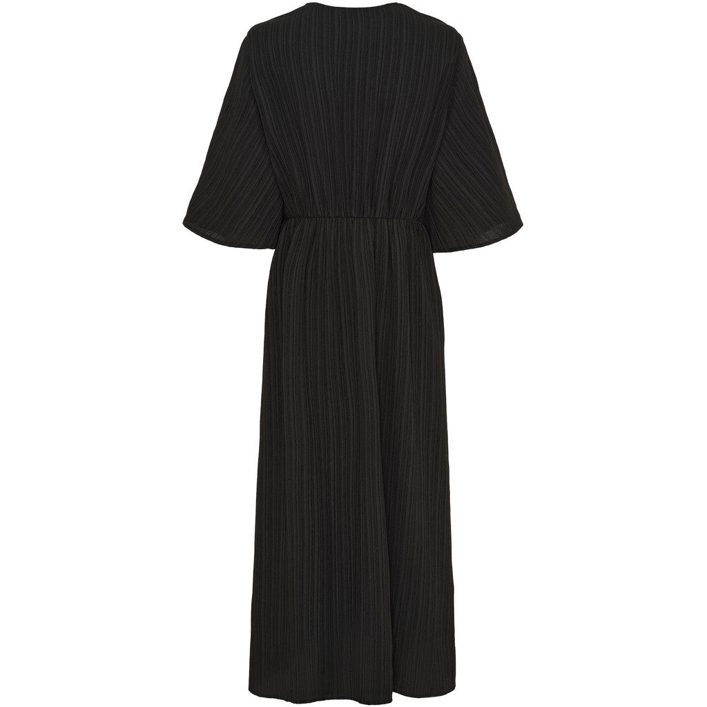 Jenni Dress är den perfekta klänningen för säsongen där elegans och komfort går hand i hand. Det draperade designet framtill framhäver midjan på ett smickrande sätt, medan den lätt stretchiga kvaliteten säkerställer en bekväm passform hela dagen. De lätt vida ärmarna och den luftiga siluetten skapar en feminin look, vilket gör klänningen både stilren och mångsidig.