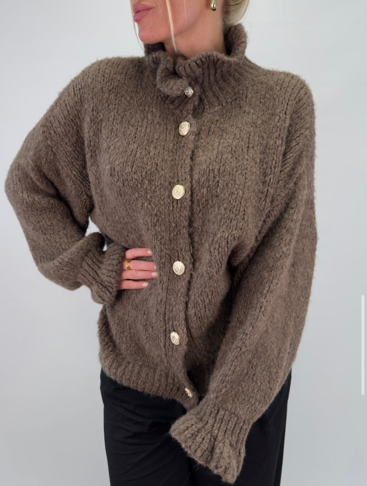 Aya är en klassisk stickad kofta med vacker knappdetalj som ger en elegant touch.