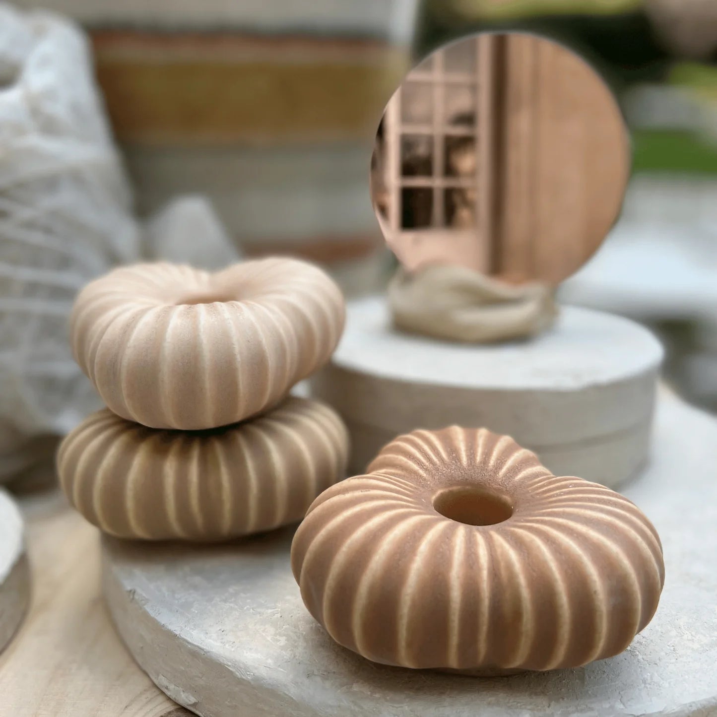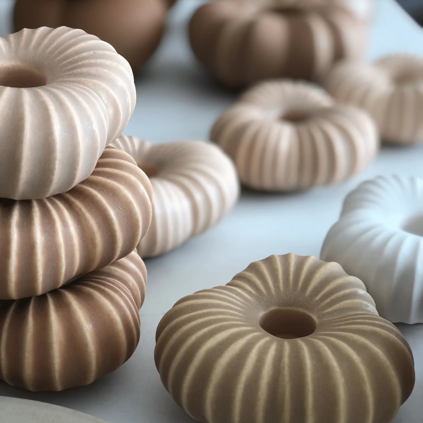 Varje ljusstake är drejad i stengodslera och täckt med en sidenmatt glasyr som framhäver dess organiska form. Små variationer i glasyr och form gör varje exemplar unikt och bär spår av det mänskliga hantverket från vår verkstad på Öland.