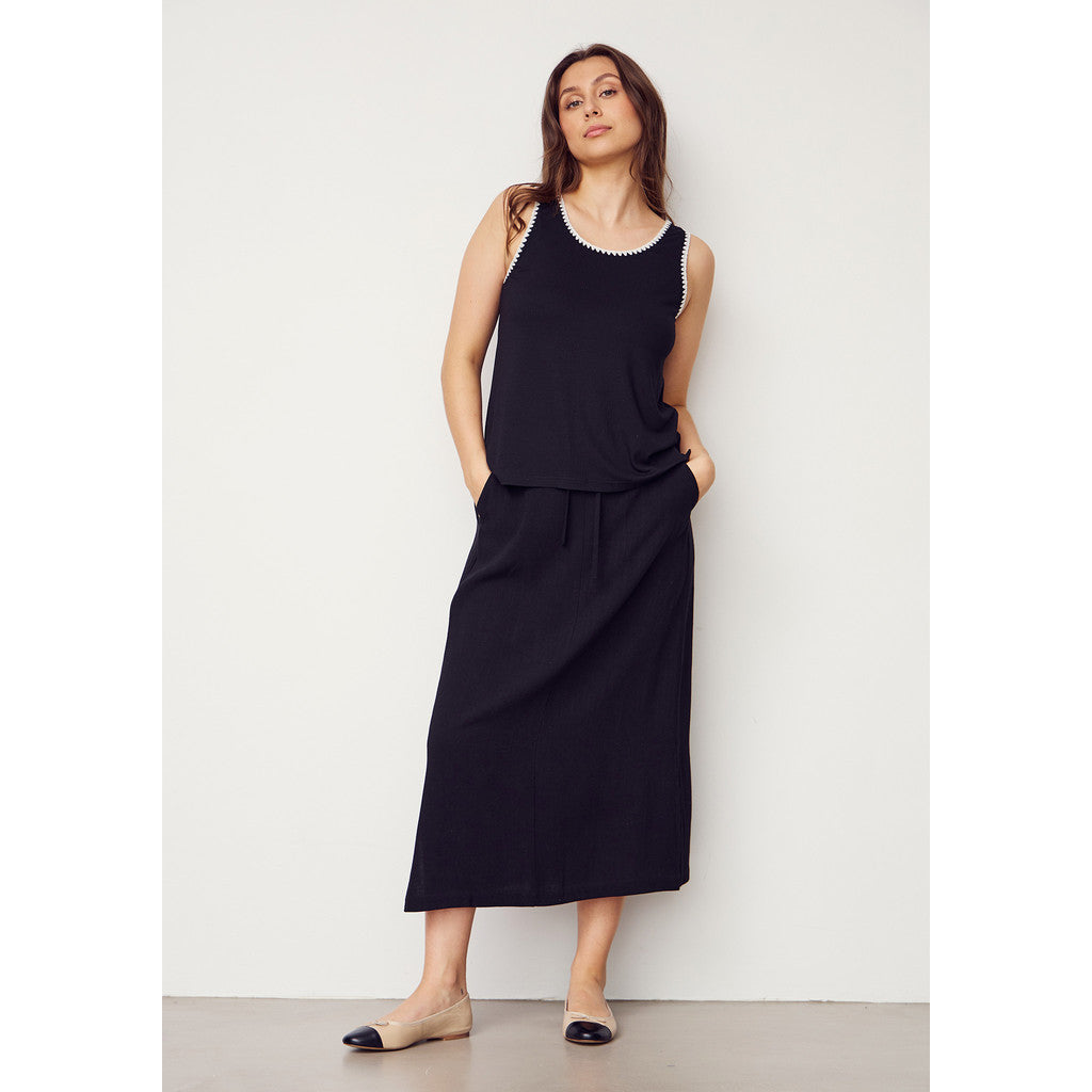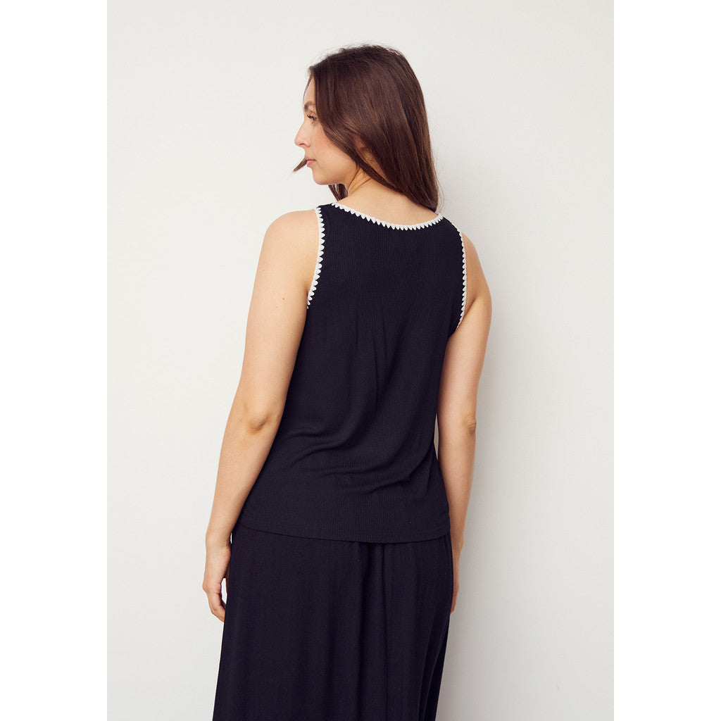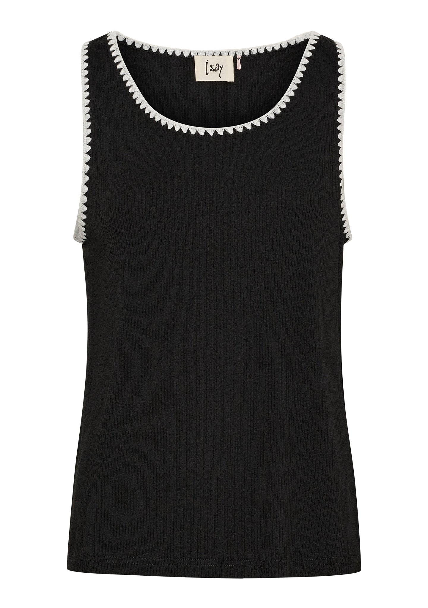 Dee Tank Top är en mångsidig och snygg topp som kombinerar komfort med en trendig look. De dekorativa kontrastdetaljerna vid hals- och armslut lägger till en unik och modern touch, medan det lätta materialet garanterar en skön känsla. Den lösa passformen gör den perfekt för både vardagliga och lite finare outfits.