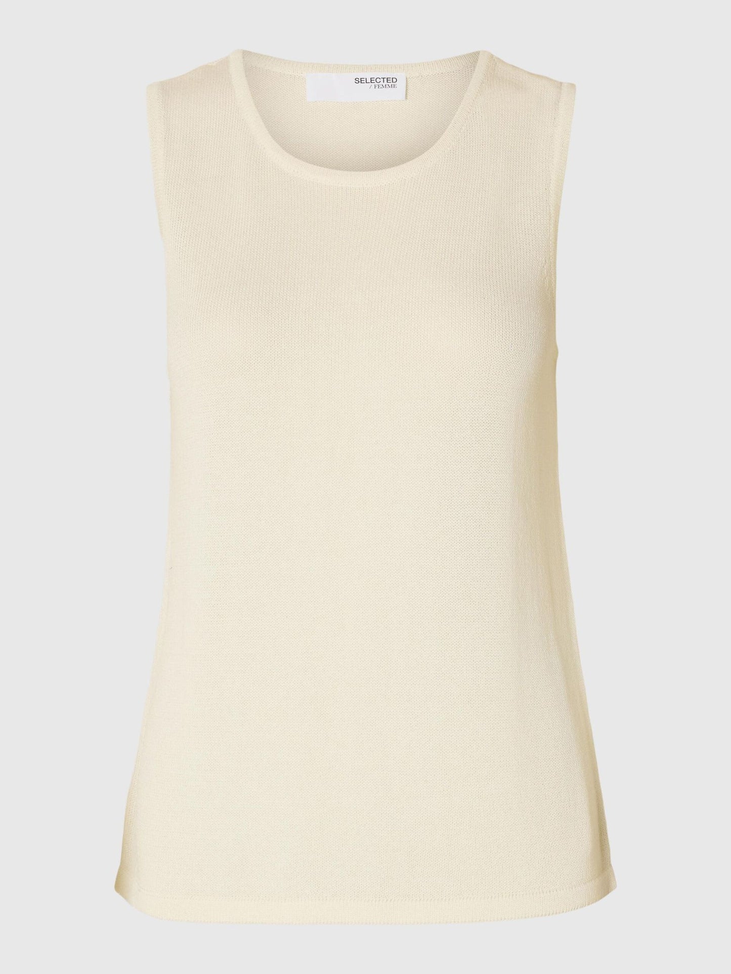 Denna tunna, stickade, ärmlösa topp kommer att passa perfekt till dina somriga linneplagg. Den är lätt, ventilerande och kan stylas på så många olika sätt – bär den med jeansshorts och sandaler eller klä upp den med en midikjol och espadriller med klackar.